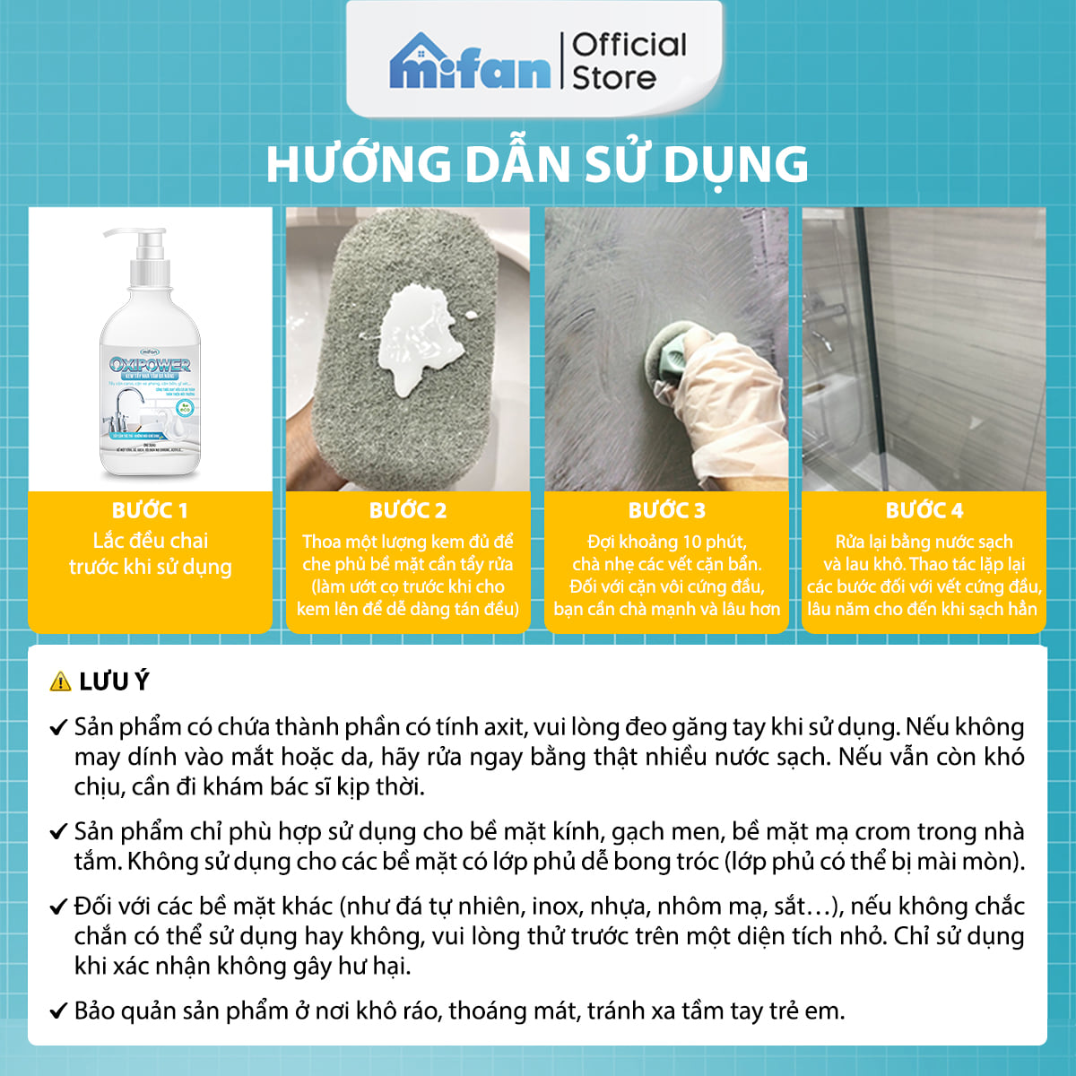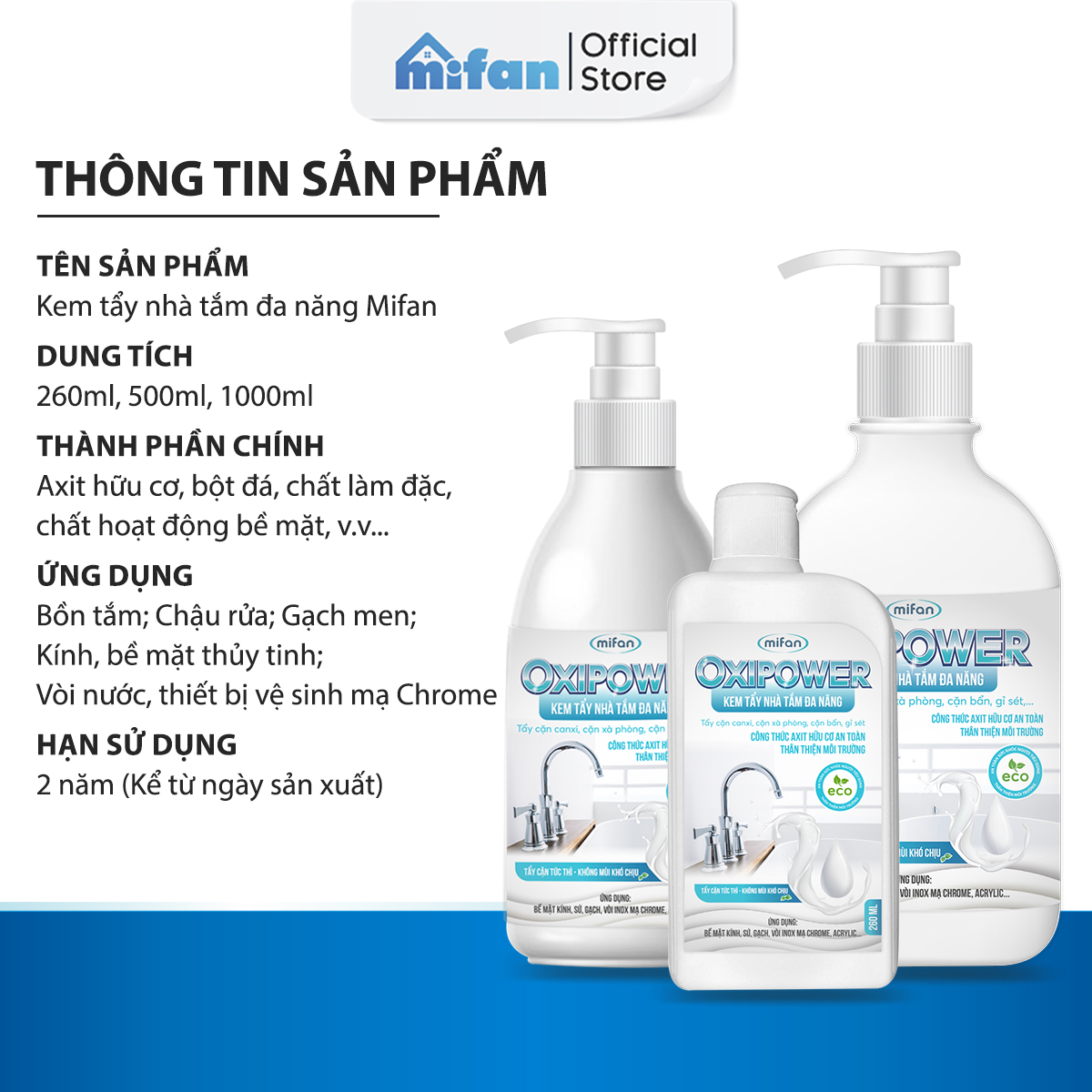 Tên sản phẩm: Kem Tẩy Nhà Tắm Đa Năng Mifan Oxipower