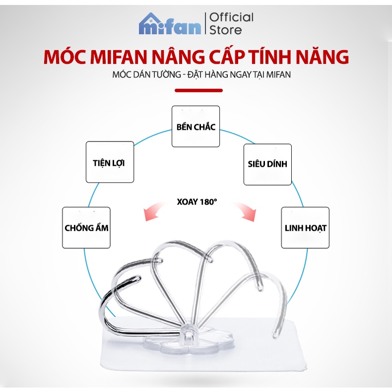 🔥 Móc Dán Tường Trong Suốt Mifan – Bám Dính Bền Bỉ, Chịu Tải 10kg