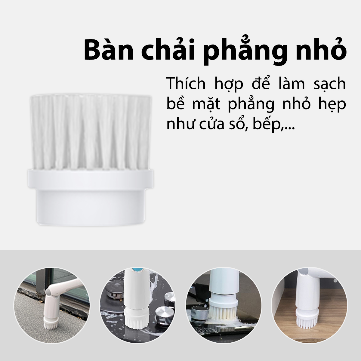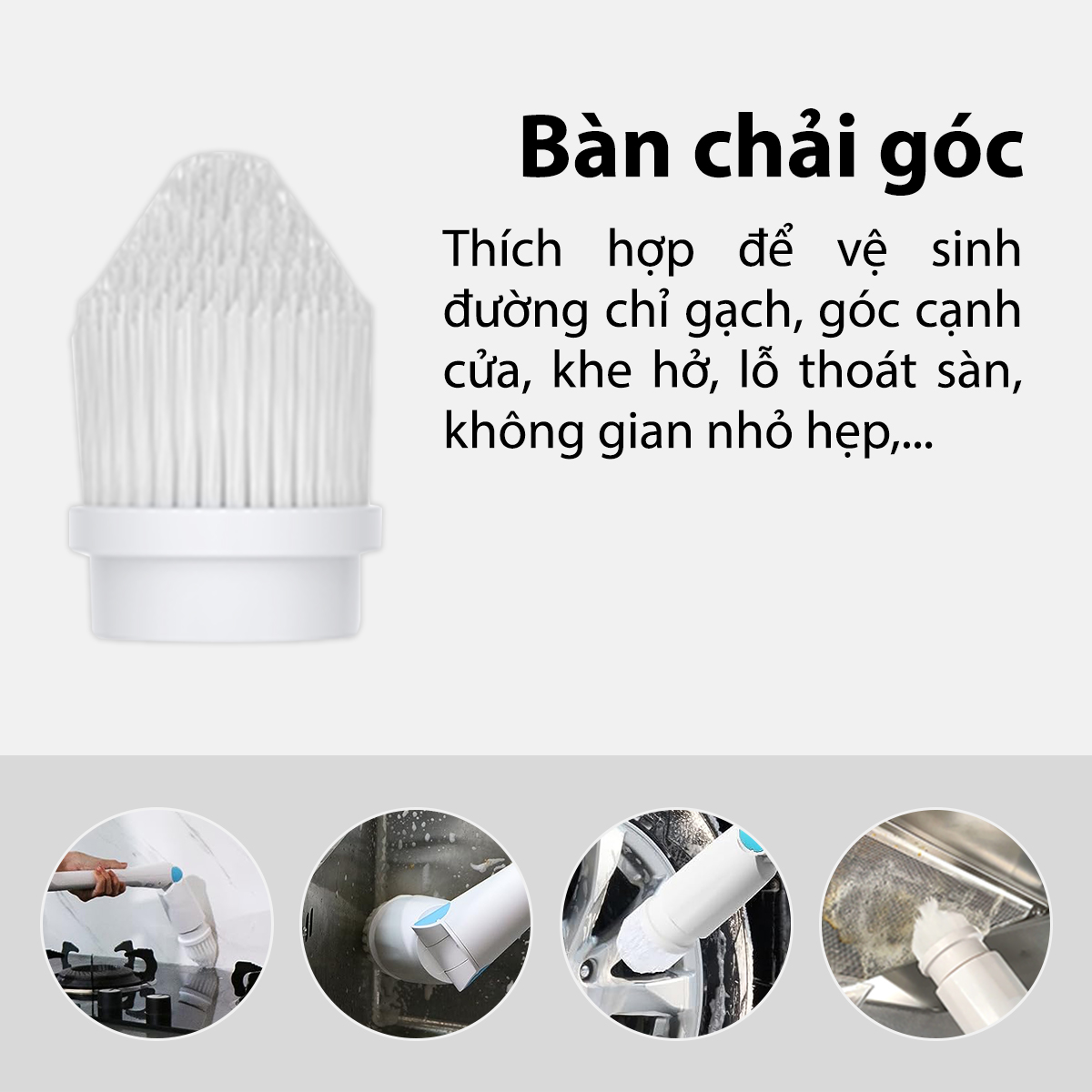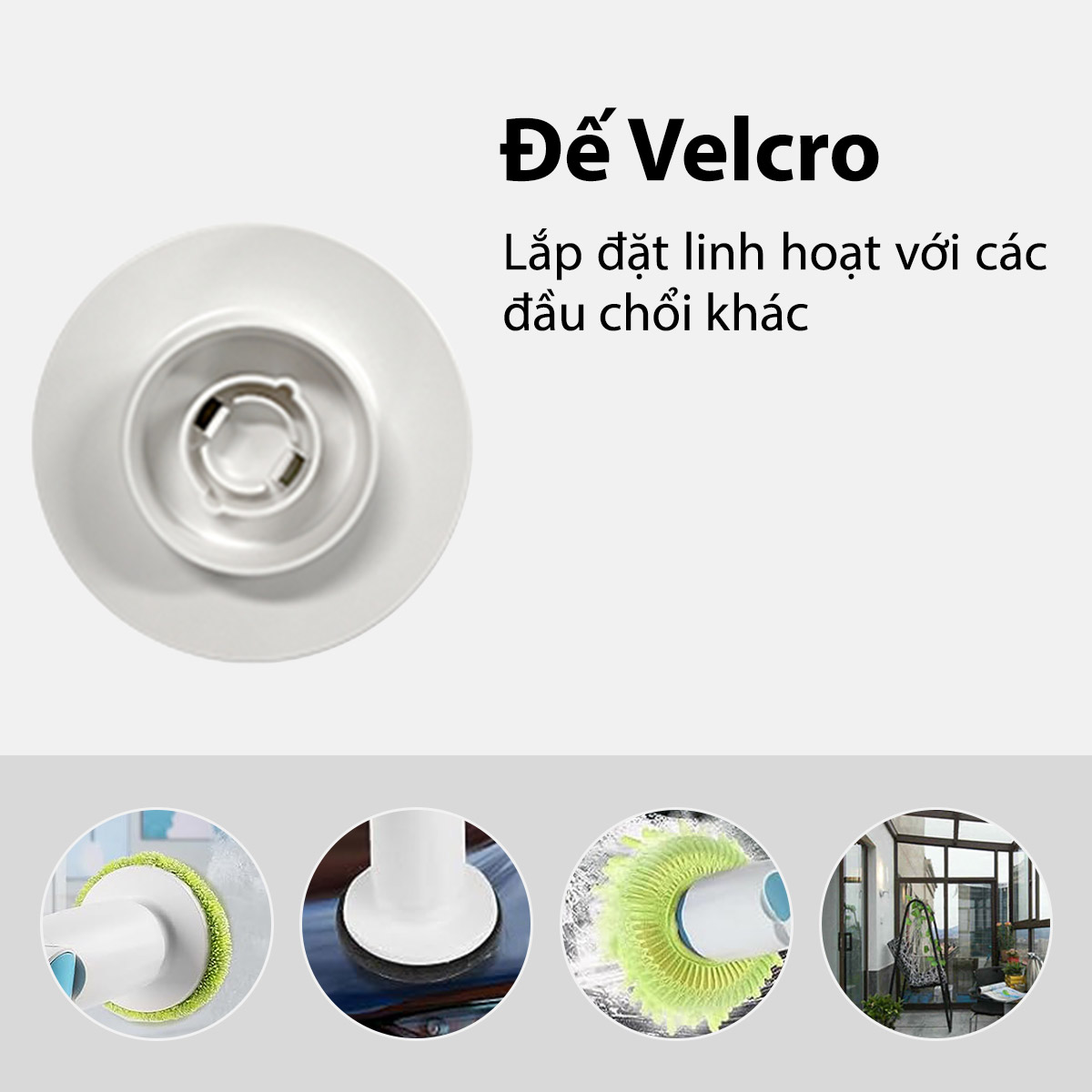 ✅ Kèm 4 đầu chổi đa năng – Dễ dàng thay đổi phù hợp với mọi bề mặt cần vệ sinh.